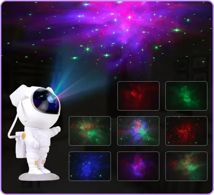 Förvandla rummet till ett kosmiskt äventyr med Spacebuddy! En fascinerande stjärnhimmel och färgglad nebulosa i 7 nyanser skapar lugn, trygghet och magi perfekt som nattlampa för både barn och vuxna. Justerbar ljusstyrka, roterande huvud, timer och fjärrkontroll ger total kontroll över upplevelsen. En stjärnklok följeslagare vid sängkanten!